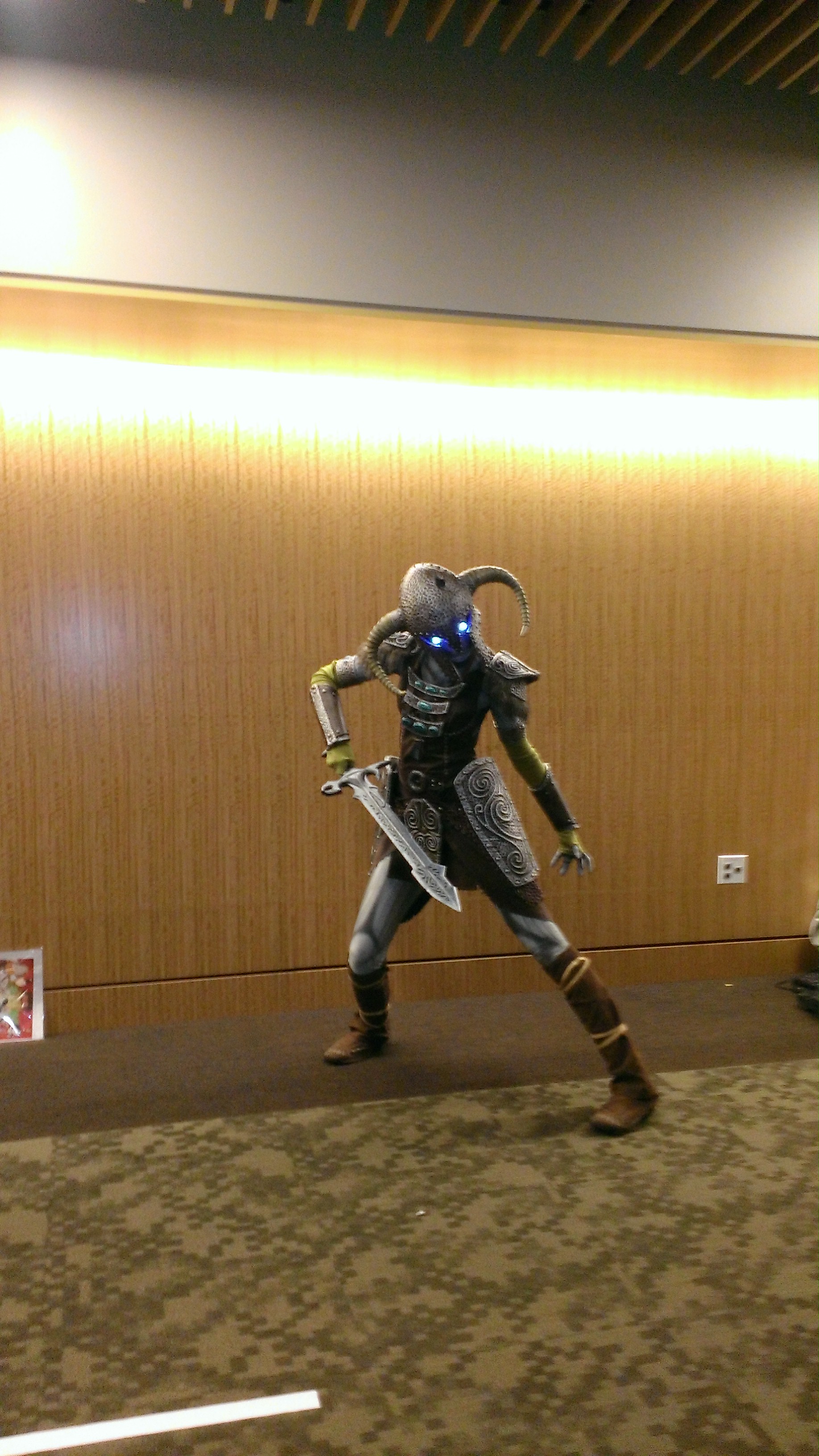Derrière l’hommage affiché pour leurs héros et héroïnes, que cherchent tous ces adeptes du cosplay en se costumant ? C’était une des questions abordées par la deuxième conférence la plus intéressante pour moi, intitulée « La psychologie du cosplay ». Cette conférence était emmenée par une authentique psychologue clinicienne, par ailleurs cosplayeuse, le Dr Andrea Letamendi. Cette psychologue a réalisé une véritable étude statistique, la première du genre, sur un échantillon de près de 800 cosplayeurs et cosplayeuses pour tenter de cerner le phénomène du cosplay. Certaines personnes évoquent le sentiment jubilatoire d’avoir une double vie, une composante secrète de leur vie, séparée de leur vie professionnelle, où ils peuvent être un autre personnage.